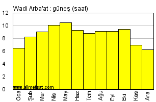 | Günlük güneşli saatlerin aylık ortalaması |