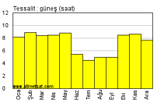 | Günlük güneşli saatlerin aylık ortalaması |