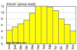 | Günlük güneşli saatlerin aylık ortalaması |