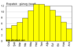 | Günlük güneşli saatlerin aylık ortalaması |