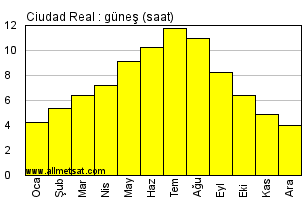 | Günlük güneşli saatlerin aylık ortalaması |