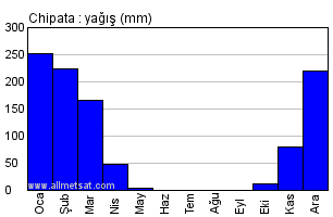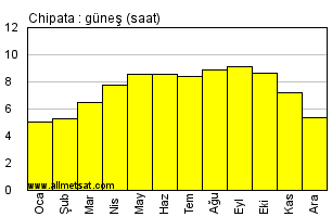 | Günlük güneşli saatlerin aylık ortalaması |