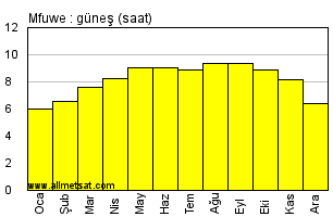 | Günlük güneşli saatlerin aylık ortalaması |
