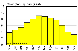 | Günlük güneşli saatlerin aylık ortalaması |