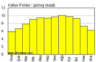 | Günlük güneşli saatlerin aylık ortalaması |