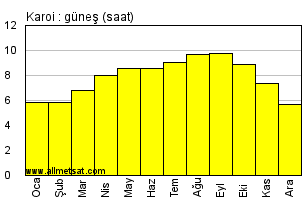 | Günlük güneşli saatlerin aylık ortalaması |