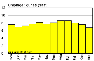| Günlük güneşli saatlerin aylık ortalaması |